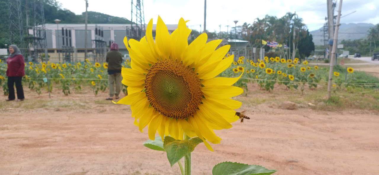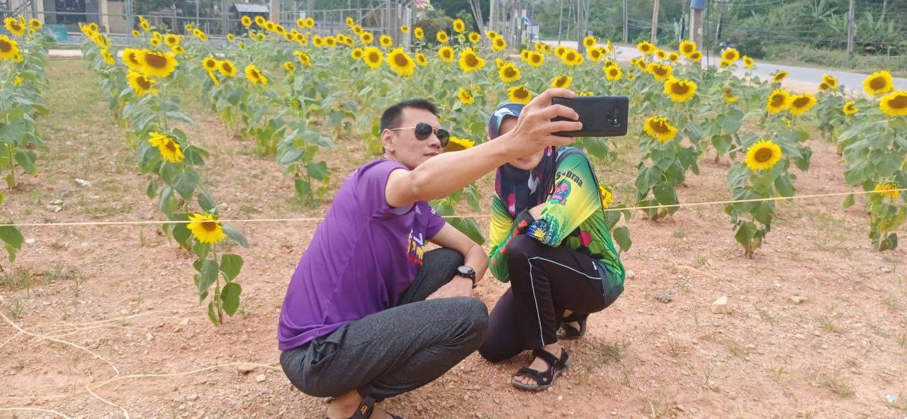 Dalam perjalanan ini, kami berhenti seketika di sebuah kebun bunga matahari hanya sekadar untuk bergambar kenangan.